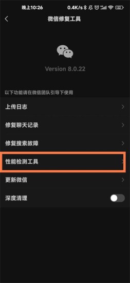 然后再点击【性能检测工具】