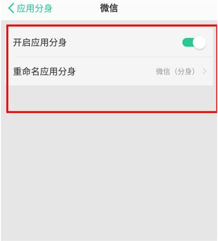 接着点击开启应用分身按钮,并点击下面的重新命名分身。
