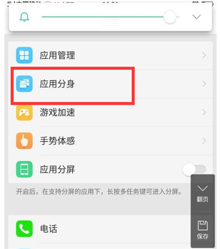 在设置主界面上,点击应用分身选项,进入应用分身界面。