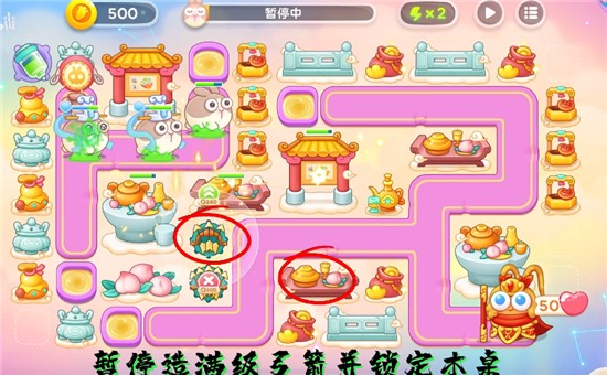 4.根据桃子位置升补炮台,并造满级魔法球