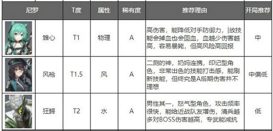 3、尼罗:T1雏心、T1.5风枪、T2狂鳄
