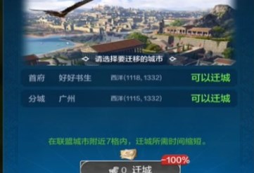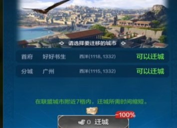 4、玩家在首次迁城的时候都是免费,之后每次迁城都需要花费五百金币。