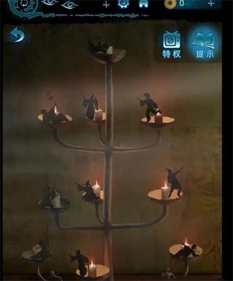 6、左侧墙壁根据奚月遥视角外侧的墙壁可以石碑上的壁画点燃烛火,二排左中右,三排中右,四排中右,得到布娃娃扔给奚月遥。