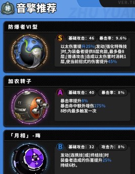 首选专属音擎防爆者VI型,这是最契合她的武器,其次是大月卡音擎加农转子,不过需要5个版本才5星,最后前期可先用普攻增伤月相晦进行过渡。