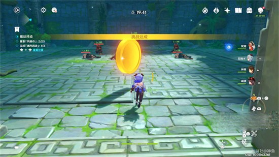 2、挑战成功后进入第二个房间击败丘丘人跟随浮现的金币返回第一个房间。