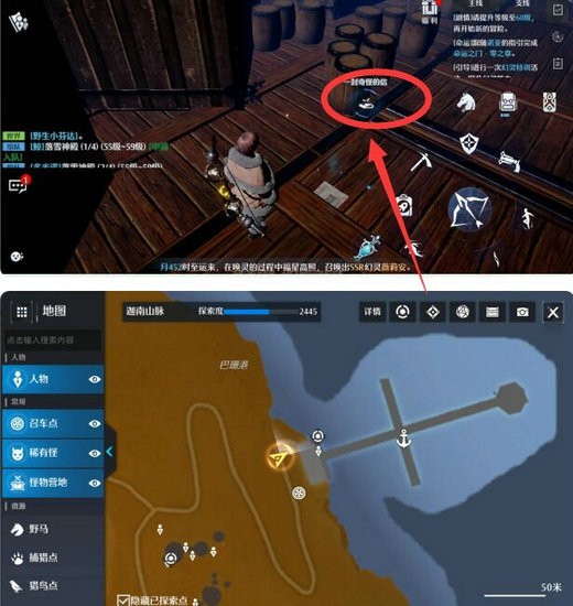 1、触发任务之后,去周围找到奇怪的信,就在木箱子木桶旁边。