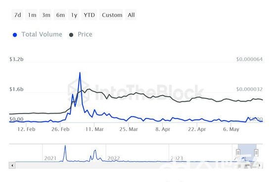 Shiba Inu 的价格走势令投资者失望,导致SHIB 持有者放弃参与该网络。这一点从交易量上就可以看出。