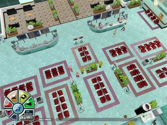 有时我们不必每个房间都配一个医师和护士,我想可能许多朋友都是这样的,所以就造成有的医生要在不同的科室跑来跑去。你要细心观察每个部分,如果医师少得不足以应付当前所有状况,医院的整体能力值就会低下。比如医生从诊断室跑去扫描部给病人诊断,但诊断室门口又有人正在排队,诊断室又没别的医生,这种情况“能力”值就下降。