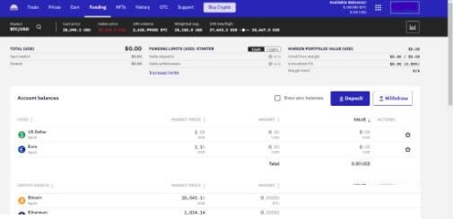Starter等级以上的帐号Funding页面就会显示充值提现的按钮了