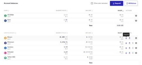 Kraken的充值提现功能集中在Funding页面(资金充值)