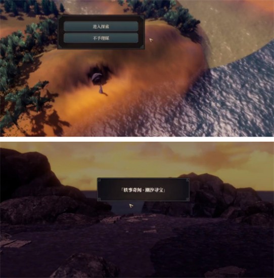 3、在水边玩家可以发现一个洞口,走进去点击探索,即可触发【望洋洞】秘宝事件;