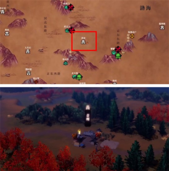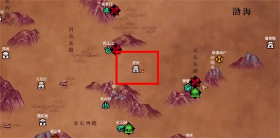 1、进入游戏先打开游戏地图,切换到渤海区域,然后找到下图的【青州】;