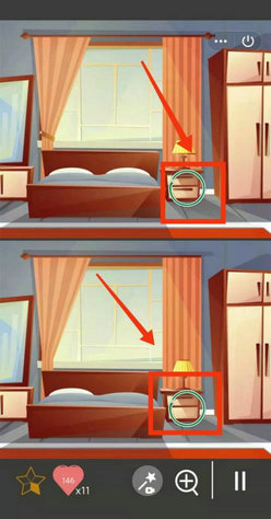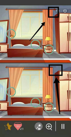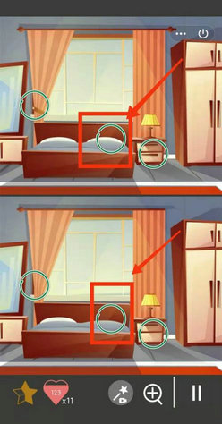 找不同1500关是一个休闲有趣的找茬游戏,玩家可以在这里锻炼自己的眼力。关于找不同1500关第八关答案是什么有的玩家还不清楚,接下来跟大家介绍该关卡的通关关键之处:抽屉拉手、窗帘绳子、床上枕头、窗帘右边、阴影,大家只要去注意两张图片的这些地方,就能顺利找出不同并通关。