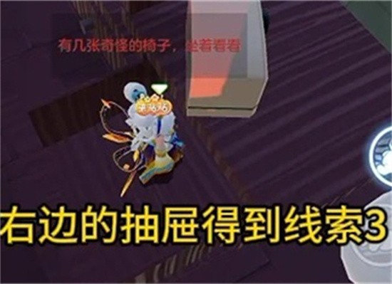1.先从书桌的抽屉里拿到客厅钥匙在客厅寻找线索。