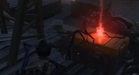 3、然后离开医院,向西北方向前进,在二层平房后面可以找到一个装备箱。