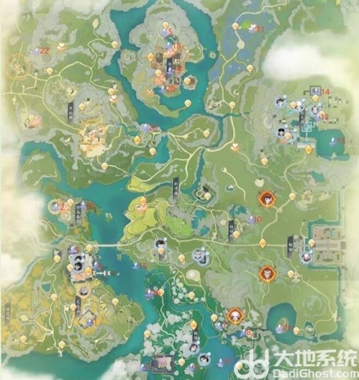 1、射雕静修点位置大全如下,也是打坐点位置。