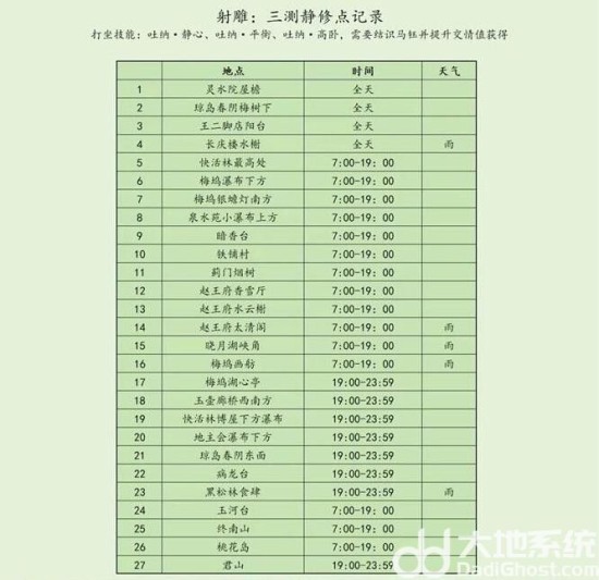 射雕静修点位置有哪些 射雕静修打坐地点位置大全