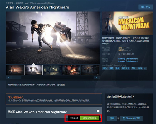 目前steam国区的心灵杀手美国噩梦的价格是35元rmb,此价格对于很多玩家来说不是问题,不过这款游戏也有更加低的价格,游戏的整体质量不错,但是游玩的时长度不高,所以如果你喜欢这个游戏的话也是值得入手的。