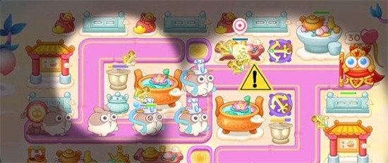 第三波将左边的祈天灯耐久度打高后,建造船锚,尽量将前半段地图的主要位置的道具拆除,建上炮塔,这一波建议大家将两个祈天灯的耐久度打到最高,以免打桃子的时候来不及打。
