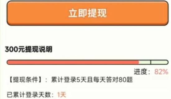 因为等你看广告攒够300元的时候,汉字高手的提现条件就改变了,要求登录5天,而且要每天都答对80道题目。