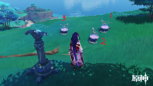 原神游戏中玩家化身旅行者,需要打败敌人找回失散的亲人,过程中需要完成各种各样的任务,有些玩家就不知道怎么解曚云神社七天神像旁边的雷霆探针,我们首先需要确定初始雷灵的轨迹,在初始雷灵先达到3号探针左侧的时候放出第二只雷灵,随后移动至1、2号探针,保证正确的方向即可解开雷霆探针。