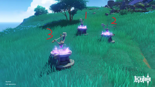 4、随后两只雷灵会先后移动至1、2号探针,3号探针前因为有沾染雷元素的人物所以始终保持正确的方向,解密完成