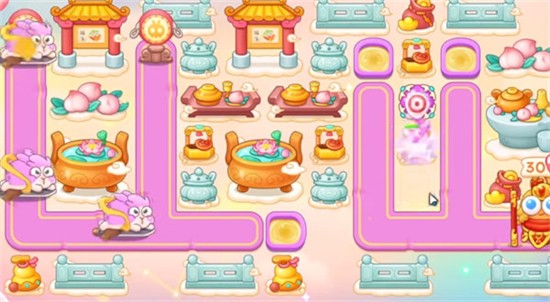 1、开局以在右侧空隙建造魔法球,升满级,锁下面再下面这个井,打掉之后建造魔法球,锁中间这个井,在滑板兔进洞之后手动取消锁定,有钱之后就升2级,滑板兔走完了重新锁井。