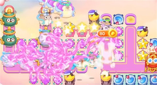 6、之后就没有什么难度了,可以在左边建造更多的魔法球,在中间建造星星塔,靠近萝卜的位置下方建造雷达,提升火力,高分通关是没什么难度的。
