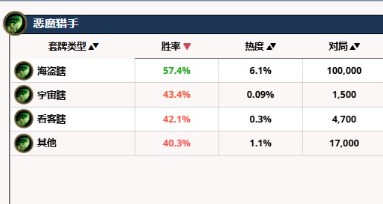 目前天梯唯一对大法术法是优势对局的卡组,海盗瞎在10万场对局中胜率也达到了57.4%,牌序好四五费叫杀,空场斩杀能力超强,配合游客牌空场带武器轻松打出二十点以上斩杀。