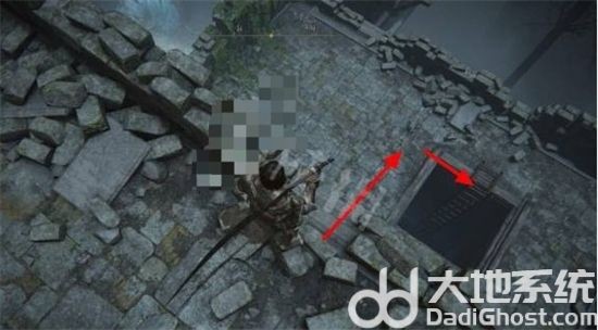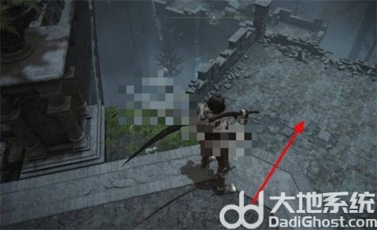 离开赐福后沿着城墙前进,在城墙中段处左转。
