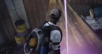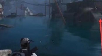 3、拿完之后看到图中的地方,一个被水淹没的地下室,在地下水域可以找到一个装备箱。