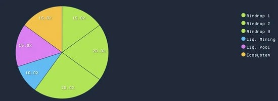 根据代币经济学,DEGEN 代币总量中,70% 分配给社区,其中,60% 的代币透过三期空投分配,剩下的10% 透过流动性挖矿分配。