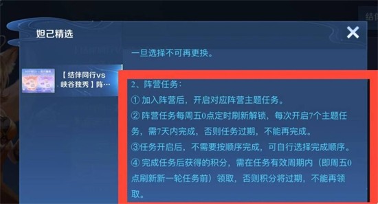 完成红框内的阵营任务即可获得主页装扮结伴同行