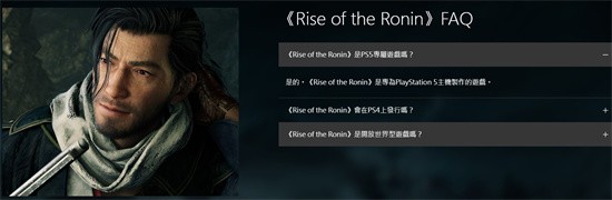 官方确认《浪人崛起》是PS5独占游戏,是专为PS5主机制作的游戏。