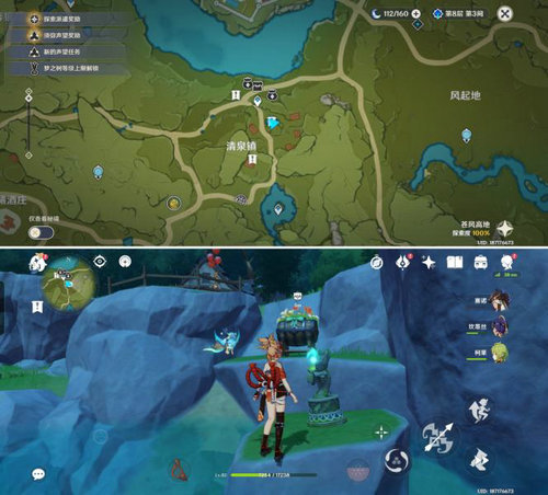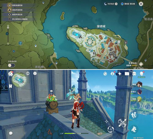 来到骑士团传送点北侧,前往如图位置,在风神雕像旁取得宝箱五。