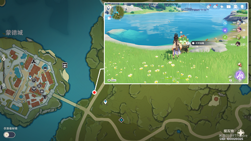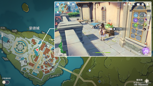来到蒙德城传送点东北侧,前往如图位置,在猫尾酒馆旁上取得宝箱六。