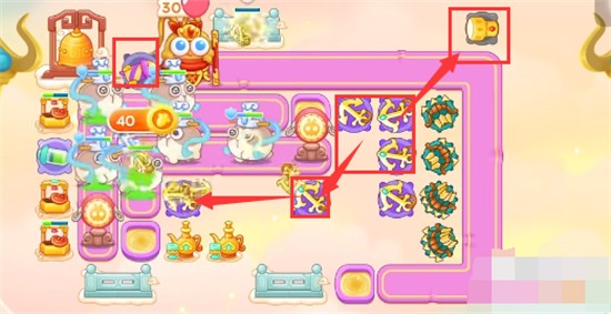 1、本关能够使用的炮塔是:毒针、多重箭、船锚、导弹、手电筒、鱼刺,这一关我们推荐使用船锚+多重箭。