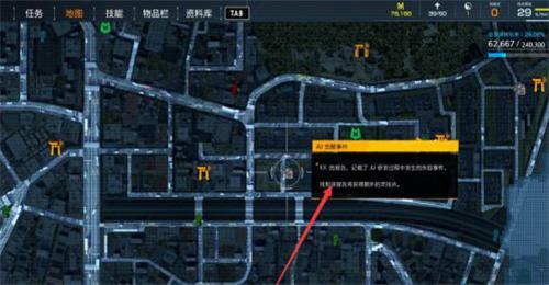 1、首先进入游戏中打开游戏地图,查找ai觉醒事件调查报告在哪里。