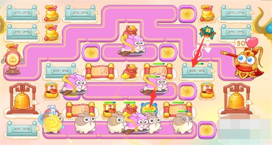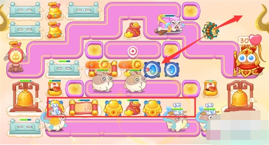 1、本关能够使用的炮塔是:毒针、元宝、风扇、太阳、多重箭、雷达,这一关我们要使用多重箭雷达为输出点。