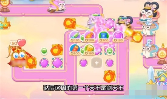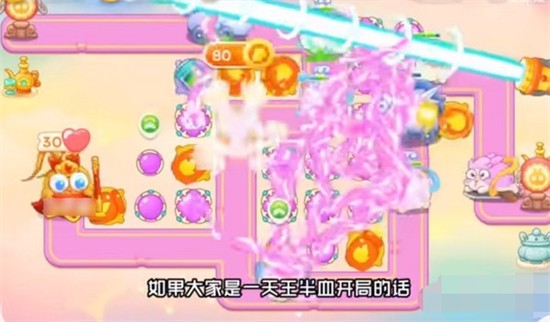 5.天王来了,这周第一个天王是剑天王,尽量把剑留在防御塔伤害最足的地方就可以了,前期基本上都是可以全程锁定天王打的,如果有仙女兔或者粉老六要偷家了再取消下锁定