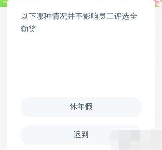 蚂蚁新村小课堂今日问题以下哪种情况并不影响员工评选全勤奖?蚂蚁新村是支付宝里面推出的答题互动游戏,只要回答正确问题就可以免费领取村民用来建设你的家园,并且还可以加速产豆,小编为小伙伴带来了蚂蚁新村小课堂今日答案最新9月28日,正确答案选择休年假,依据《工资支付暂行规定》劳动者是享有休假的权利。