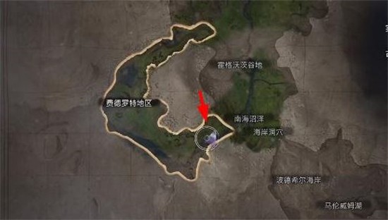 1、通过在费德罗特地区,下图位置,找到【艾恩代尔】地区,位于费德罗特地区的村庄。