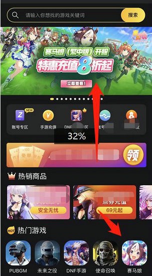2、第二步:在里面搜索找到赛马娘台服这款游戏(在首页幻灯,还有推荐都找到)。