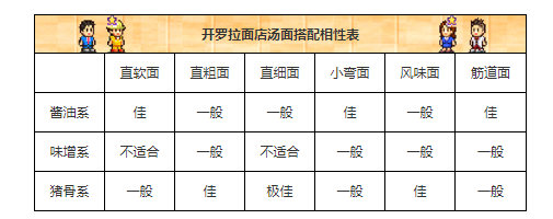 开罗拉面店汤面搭配相性资料汤与面的最佳组合,开罗拉面店汤面搭配是非常重要的,只有合理的搭配才能制作出最美味的拉面给客户吃,吸引更多的客户前面光顾,每个汤所搭配的面是不同的,很多玩家都还不知道要怎么搭配比较好,以下小编带来详细的开罗拉面店汤面搭配技巧分享。