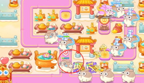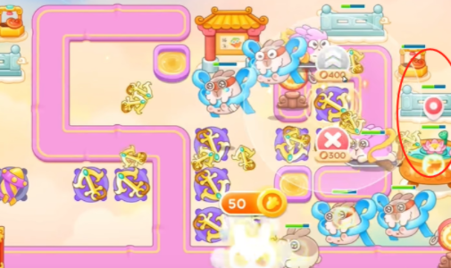 2、看见粉兔直接锁定,二级船锚升三级,左边兔子每个都锁定打。