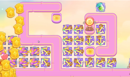 3、建立一个一级船锚,打钱袋,钱袋打掉,空出位置,建立船锚,继续清理周围障碍物,注意第二波有飞天兔,如果船锚没打死,在萝卜附近建立导弹。
