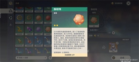 使用饵料:酸桔饵(材料:一个泡泡橘和一个小麦)