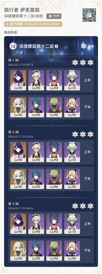 由于本期深渊不存在属性克制问题,二金和二金以上的任何标准练度的成熟配队均能轻松打过上半。
