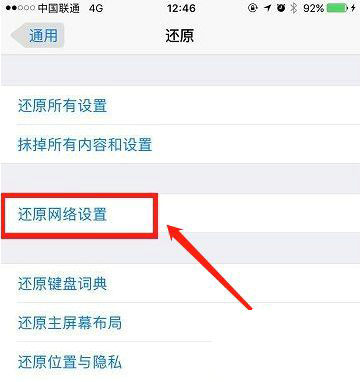 点“设置—通用—还原”,然后“还原网络设置”,再重新设置网络