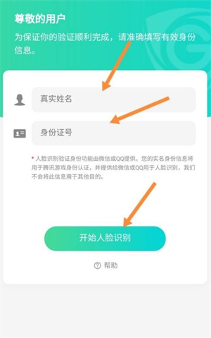 然后输入身份证号、真实姓名,再点击开始人脸识别